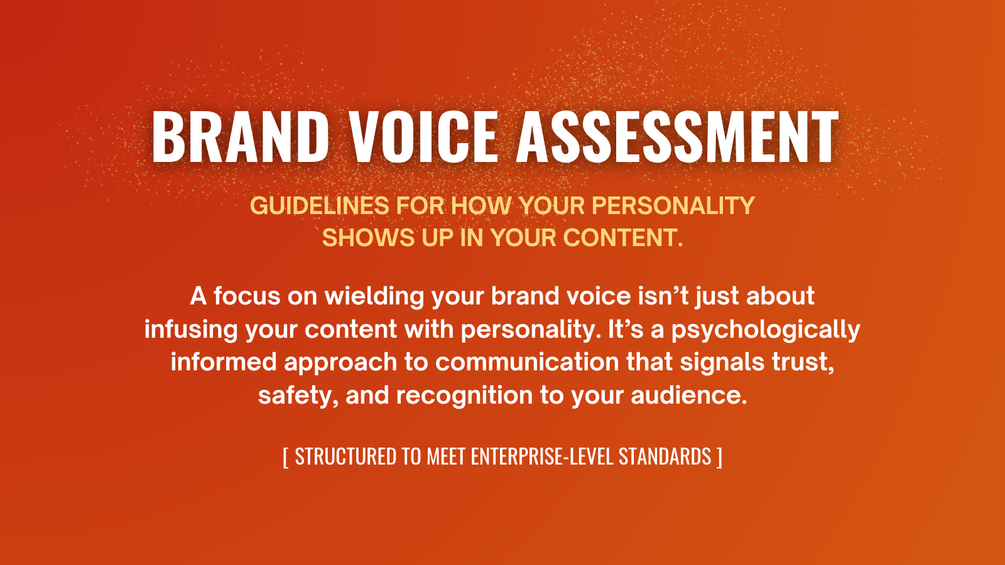 Introducing the Brand Voice Assessment backed by secondary audience and market research pulled from authoritative sources and cross-references patterns using current data from industry research (Pew, McKinsey, Deloitte, Gartner), academic journals, social listening tools, Google Trends, trade publications, review sites, forums, Census data, and more.