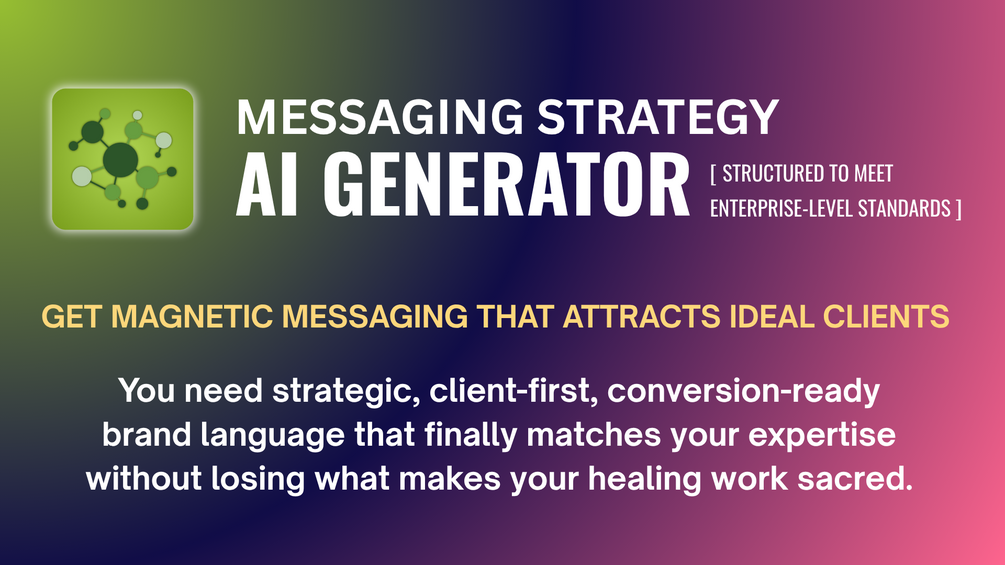 Answer 13 questions about your practice and your clients. In 10–15 minutes, you'll have a complete Messaging Strategy built on frameworks that cost five figures at agencies I've worked with and learned from.
